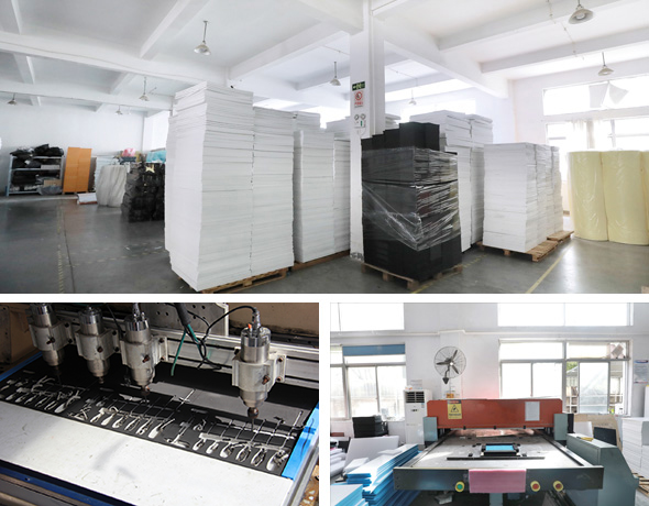 有最新自動化精準分切機6臺,自動150噸雙邊進料裁斷機8臺,自動雙邊粘合機6臺,雕刻機8臺。其他各種生產(chǎn)設備齊全,精確度高,質(zhì)量保障。